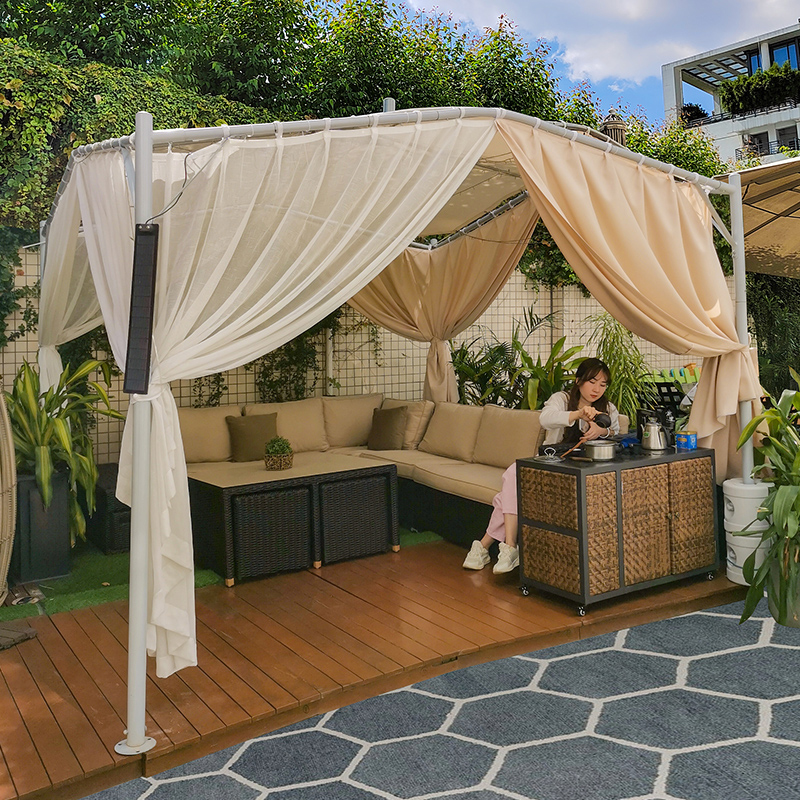 天鵝蓬(3.5米)+轉(zhuǎn)角沙發(fā)+布簾+移動茶臺(送桶凳,送太陽能燈,送高爾夫傘,送燒烤爐)
