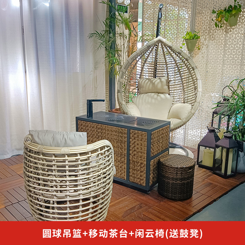 圓球吊籃+移動茶臺+閑云椅(送桶凳)