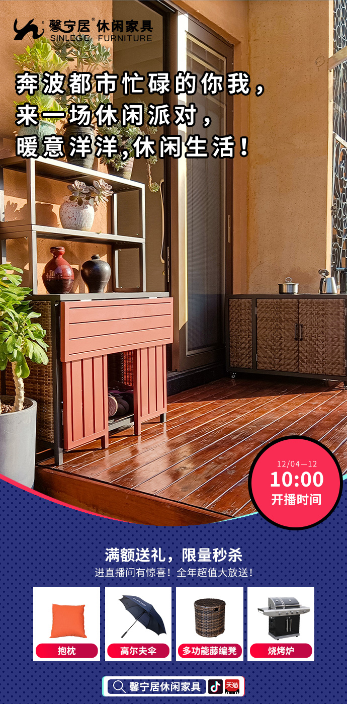 作為戶外休閑家具領(lǐng)域的引導(dǎo)品牌,馨寧居在本次雙12年終盛典中精心準(zhǔn)備了適合居家休閑的吊椅、搖椅、陽臺桌椅,以及直播間優(yōu)惠力度超前的冰淇淋、搖搖樂、暖洋洋九大庭院休閑生活套餐,助力人們高效休閑,享受健康生活。