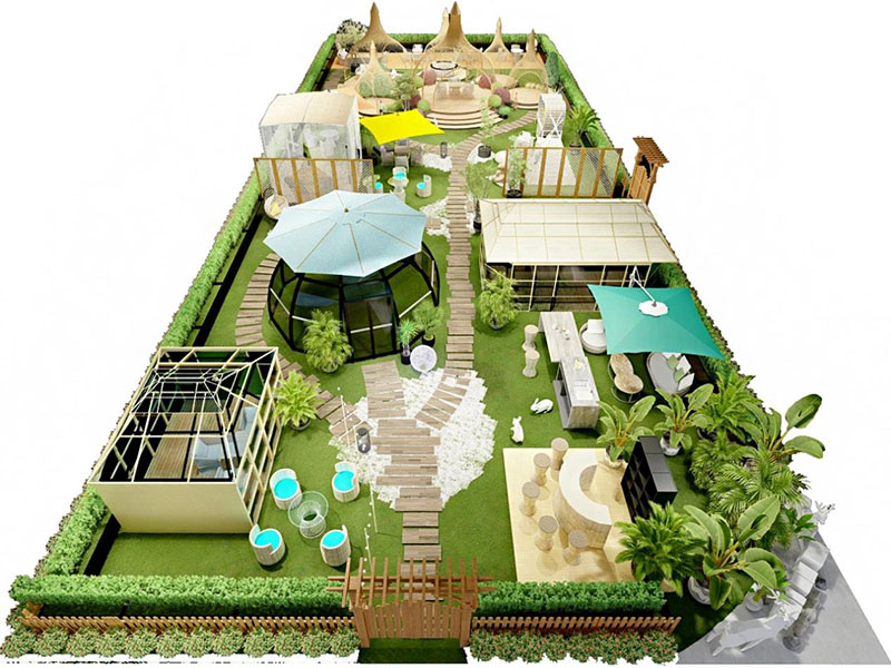樹間小屋+遮陽傘休閑空間:合家休閑新模式