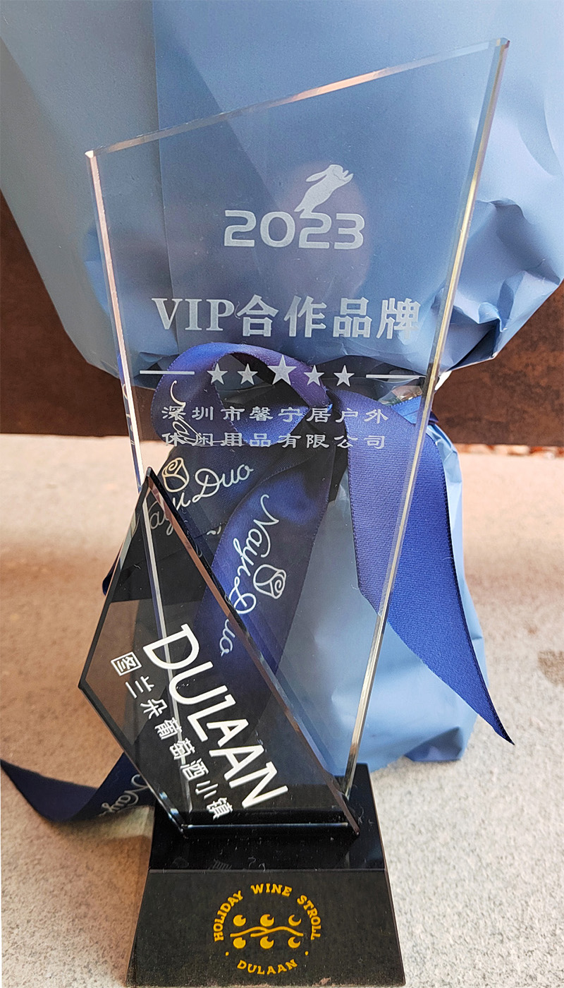 頒發(fā)給深圳市馨寧居戶外休閑用品有限公司的“2023 VIP合作品牌”獎杯是寧夏圖蘭朵葡萄酒小鎮(zhèn)對馨寧居休閑家具品牌非常大的肯定。
