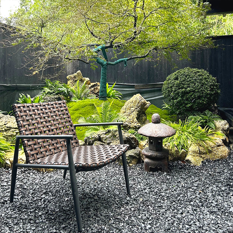 北方的四合院式庭院。常以常綠的松柏類喬木和落葉的花灌木為主體,并以對稱式的布局為多,配以水池或水景的較少,通常選擇戶外家具椅深色為主,體現庭院主人的沉穩、儒雅和莊重。