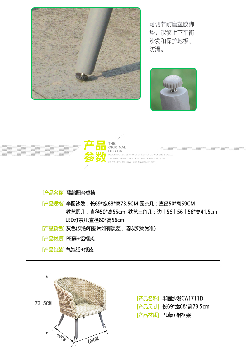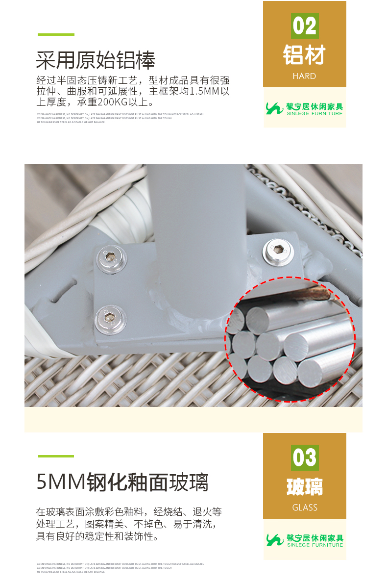 - 材質:PE藤+鋁框架