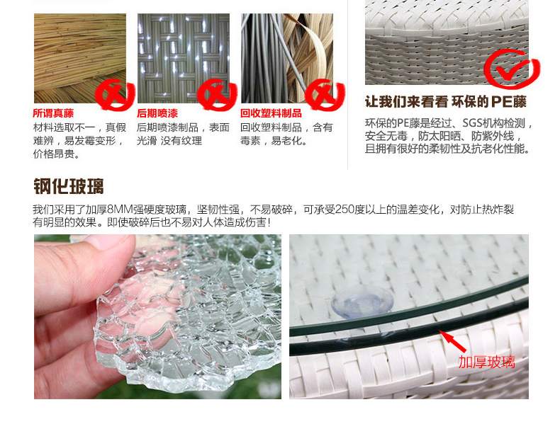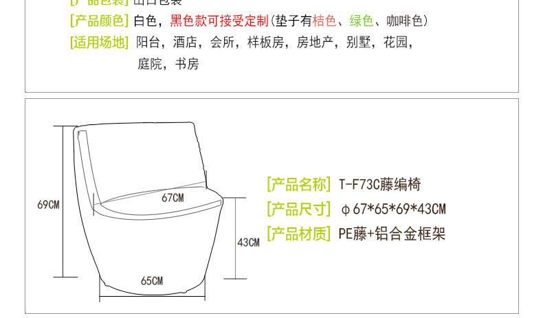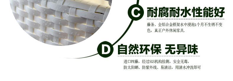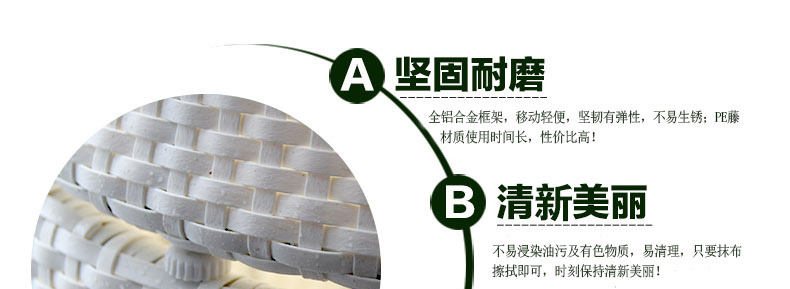 - 材質:全鋁合金框架+PE藤