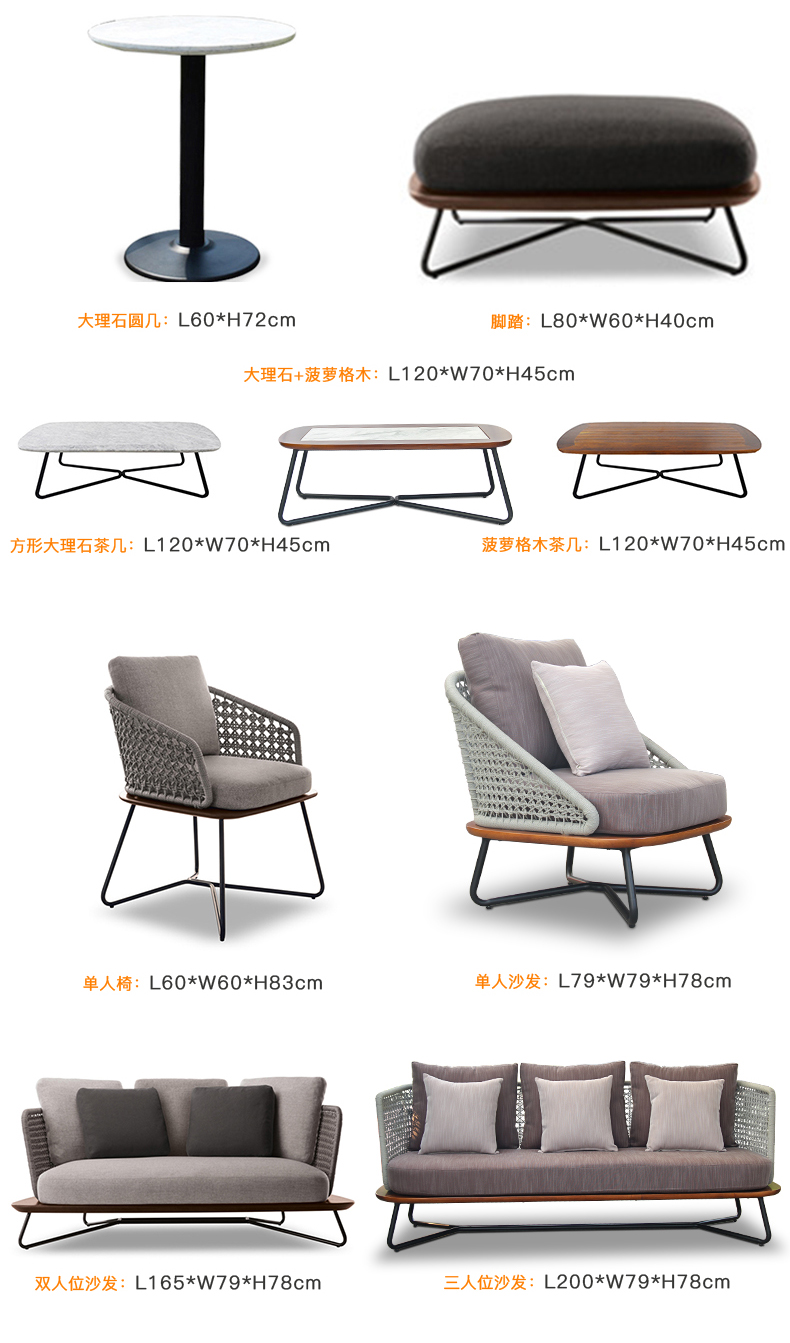 三人沙發:L2000*D790*H780mm;
