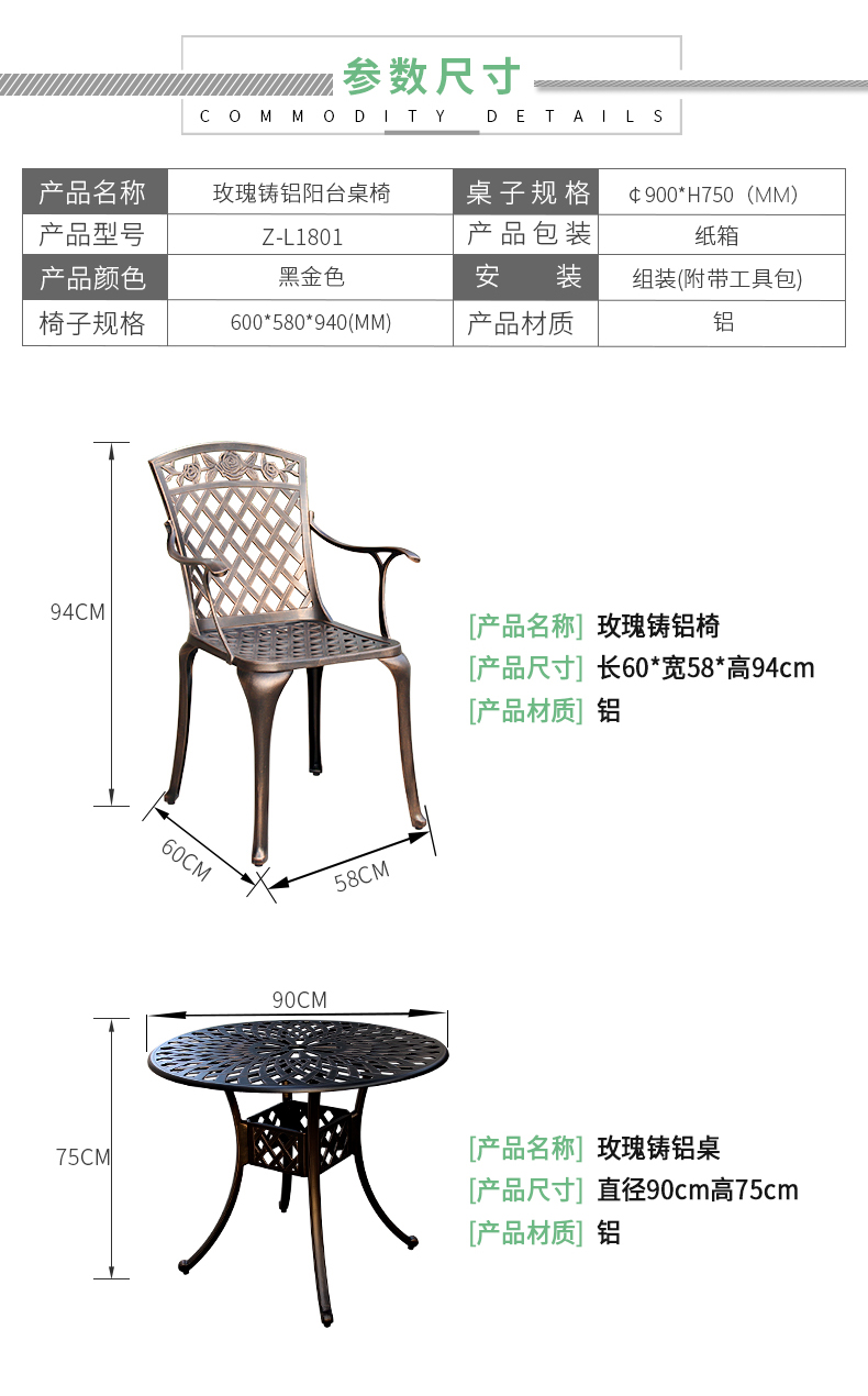 鑄鋁玫瑰休閑桌椅Z-LY1801