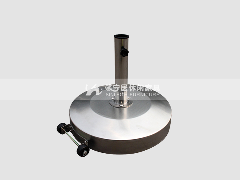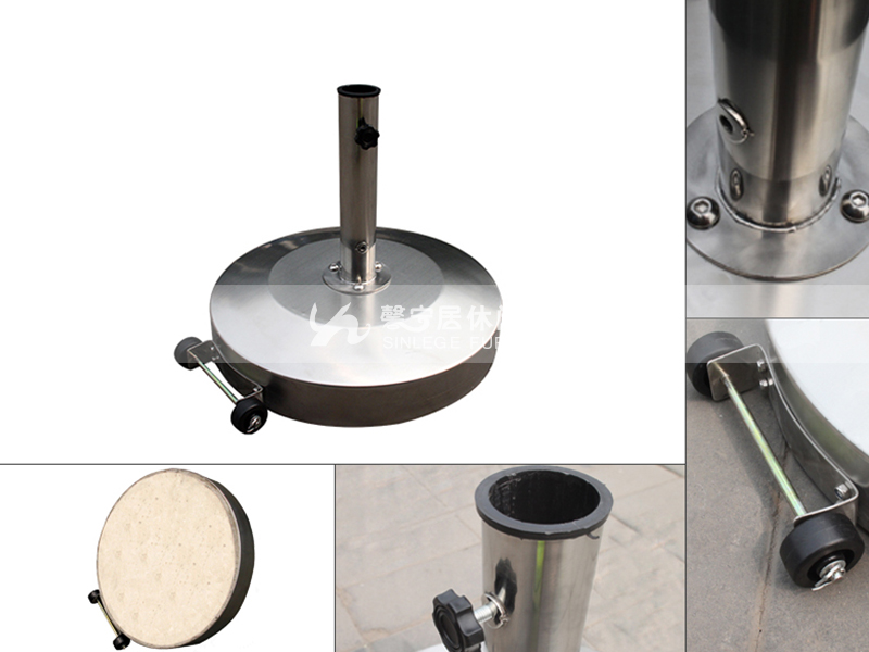 傘座帶有滑輪移動更加的方便,外部不銹鋼包裹水泥澆筑的傘座更加的厚重,耐候性高、防水、防火、耐腐蝕、抗壓強度高等特點更強