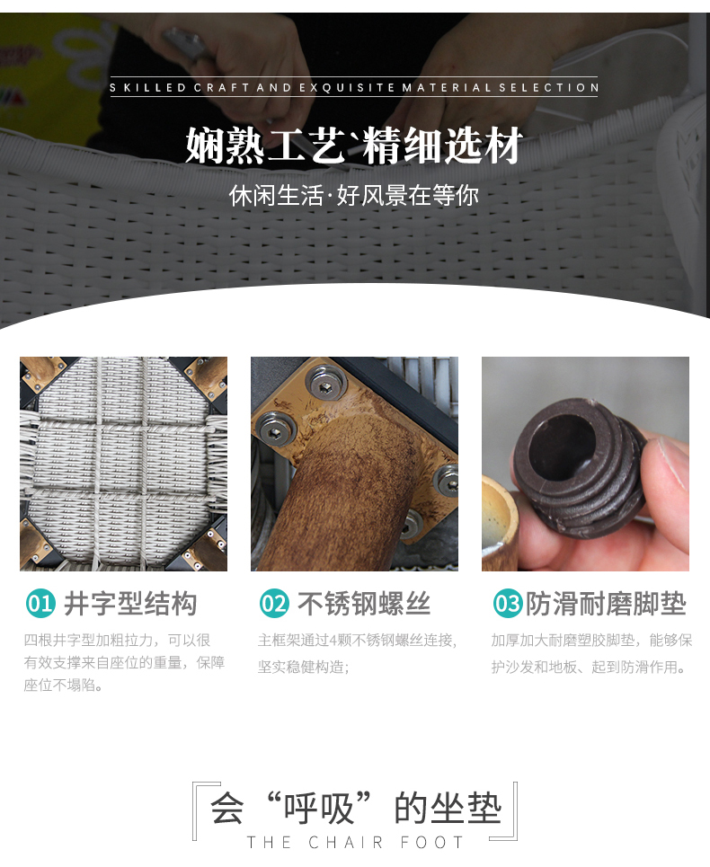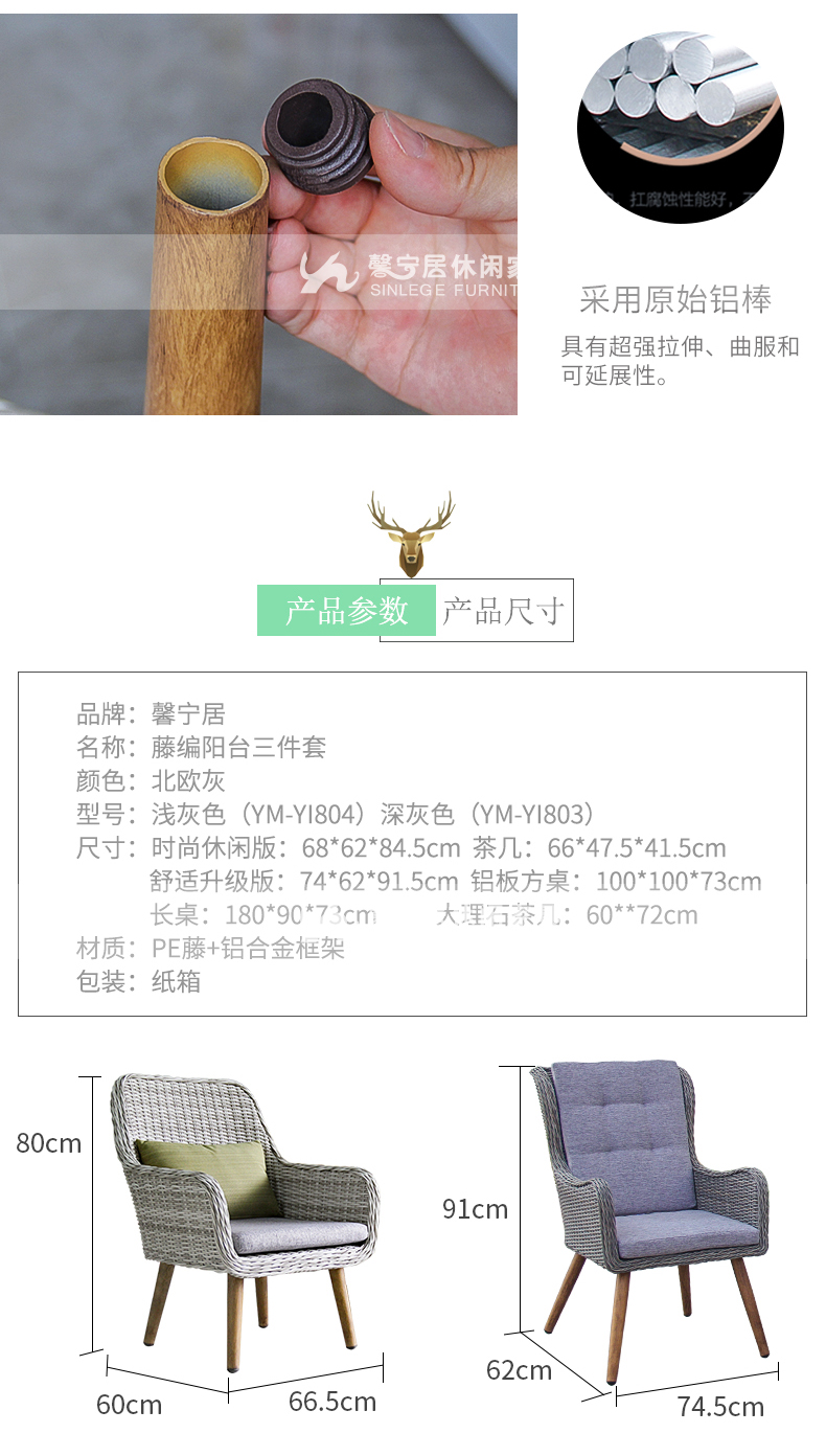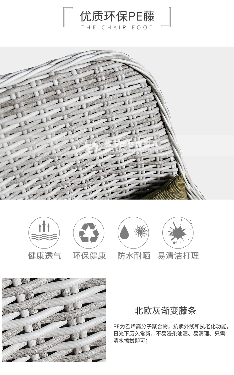 - 材質:鋁合金框架+PE藤