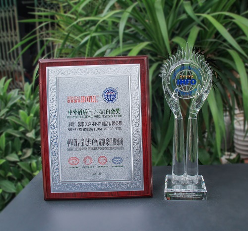 2017年,深圳市馨寧居戶外休閑用品有限公司,在中外酒店業屆公認最具公信力的獎項之一——“中外酒店白金獎”評選中,從眾多候選家具品牌中脫穎而出,奪得中外酒店(十二屆)最佳戶外定制家具供應商【白金獎】!