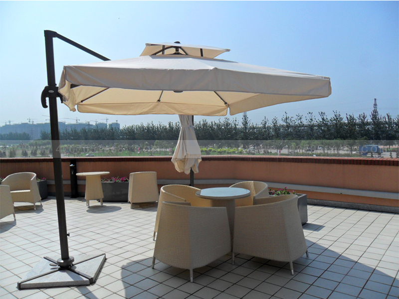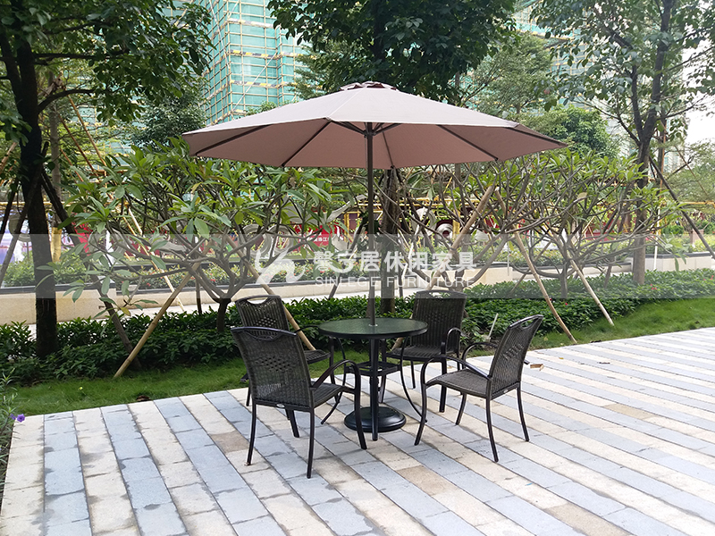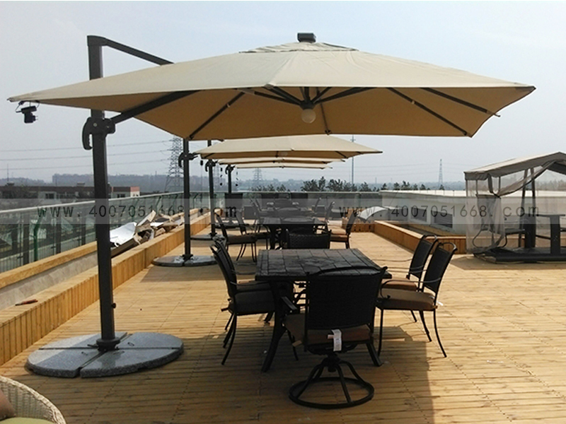可以根據(jù)傘面的織物性質(zhì)初步判斷防紫外線性能。一般說來,棉、絲、尼龍、粘膠等的防紫外線性能較差,而滌綸較好。通常用來制傘的含滌面料有色丁布、麥克布等。此外,防紫外線性能以緞紋織物最好,以下依次是斜紋、平紋,顏色越深越好。馨寧居戶外遮陽傘一直采用的是280g滌綸布和色織布,進(jìn)口賽百綸傘布是在客戶要求下才會(huì)選用。