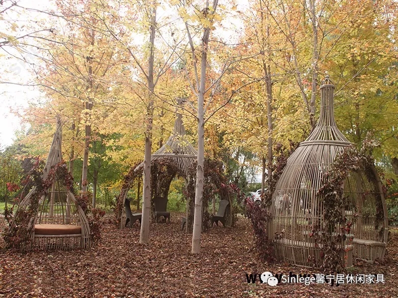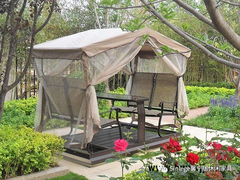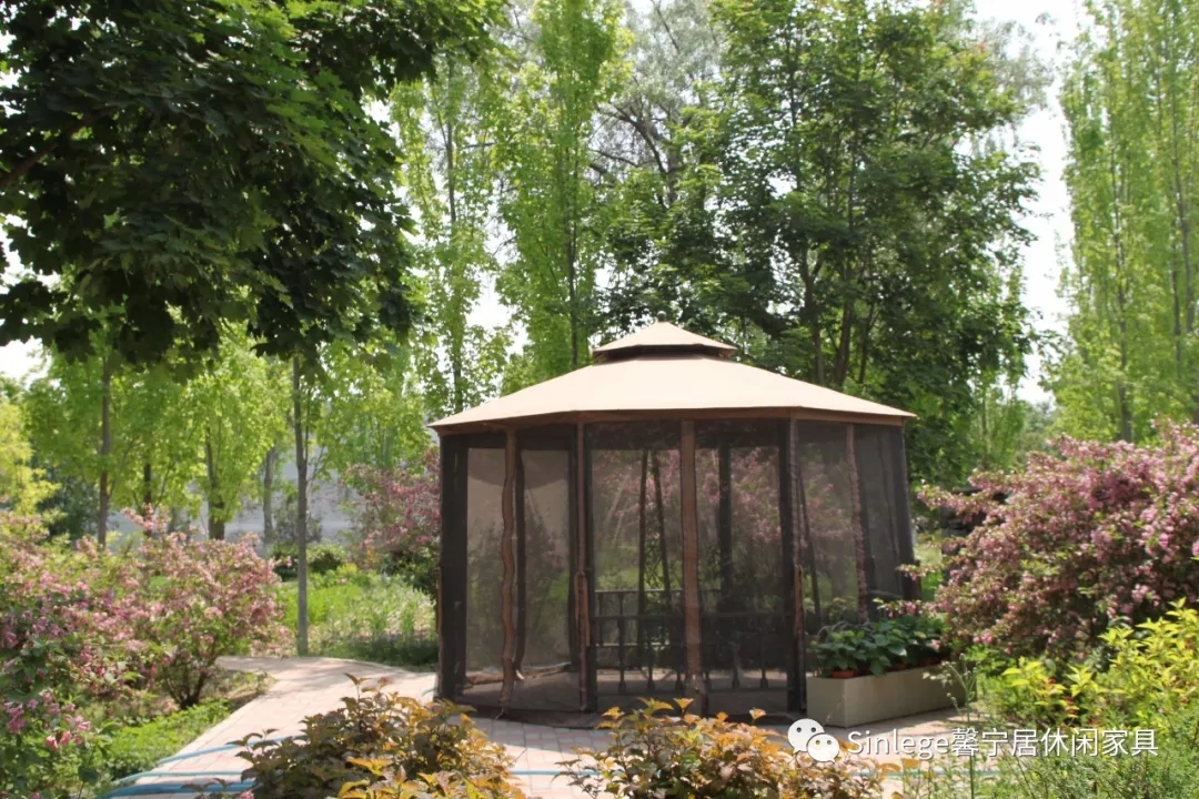 涼亭和搖椅,也能營造出輕松的戶外就餐空間,而且別有一番浪漫氣氛。一種親近自然的休閑生活方式油然而生!
