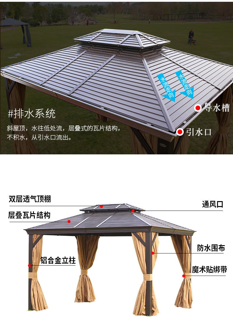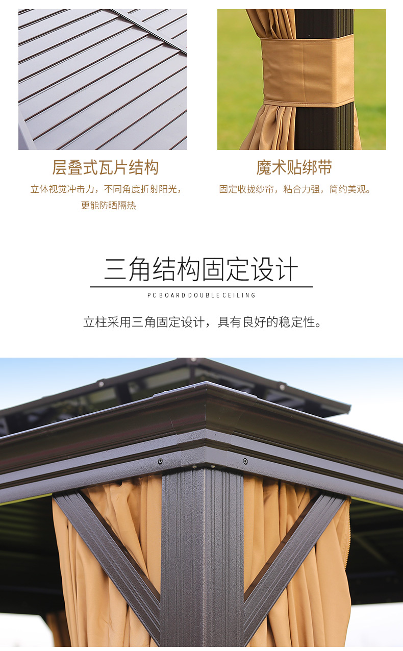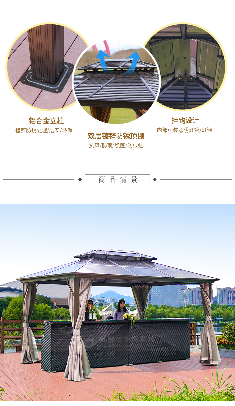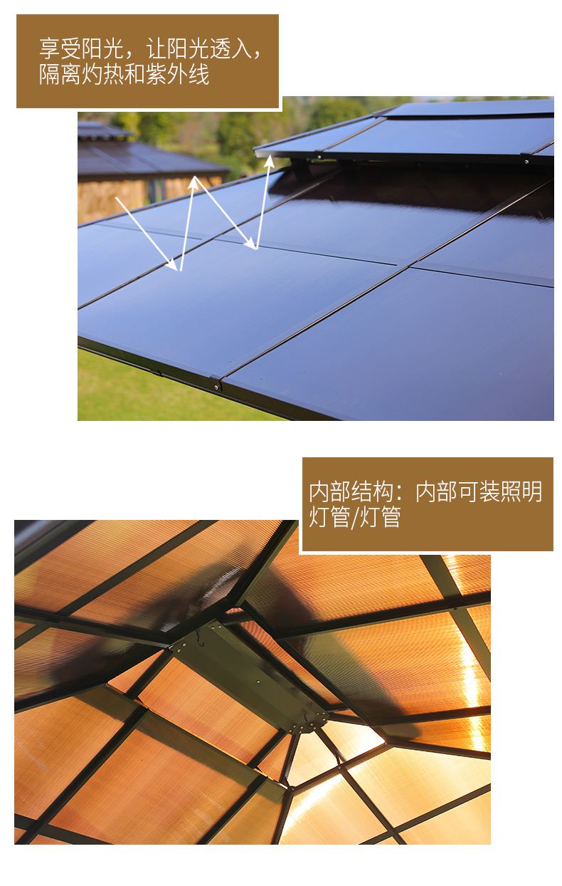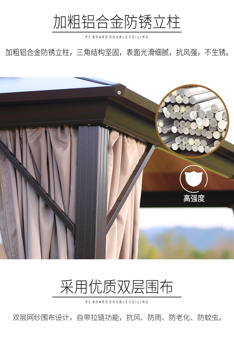 - 材質:全鋁合金框架,鍍鋅頂板