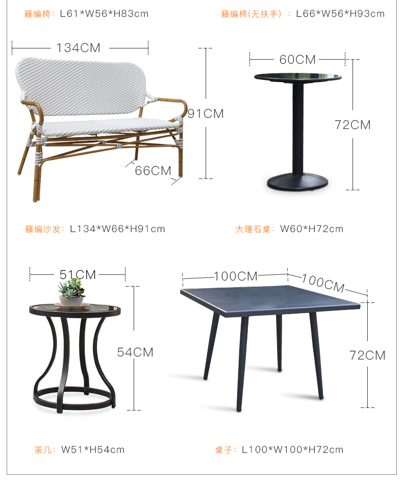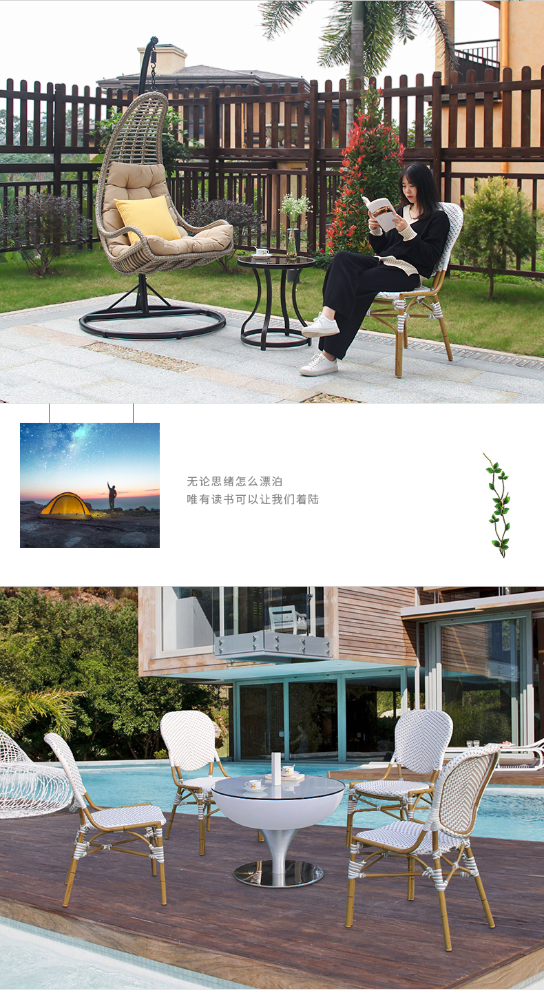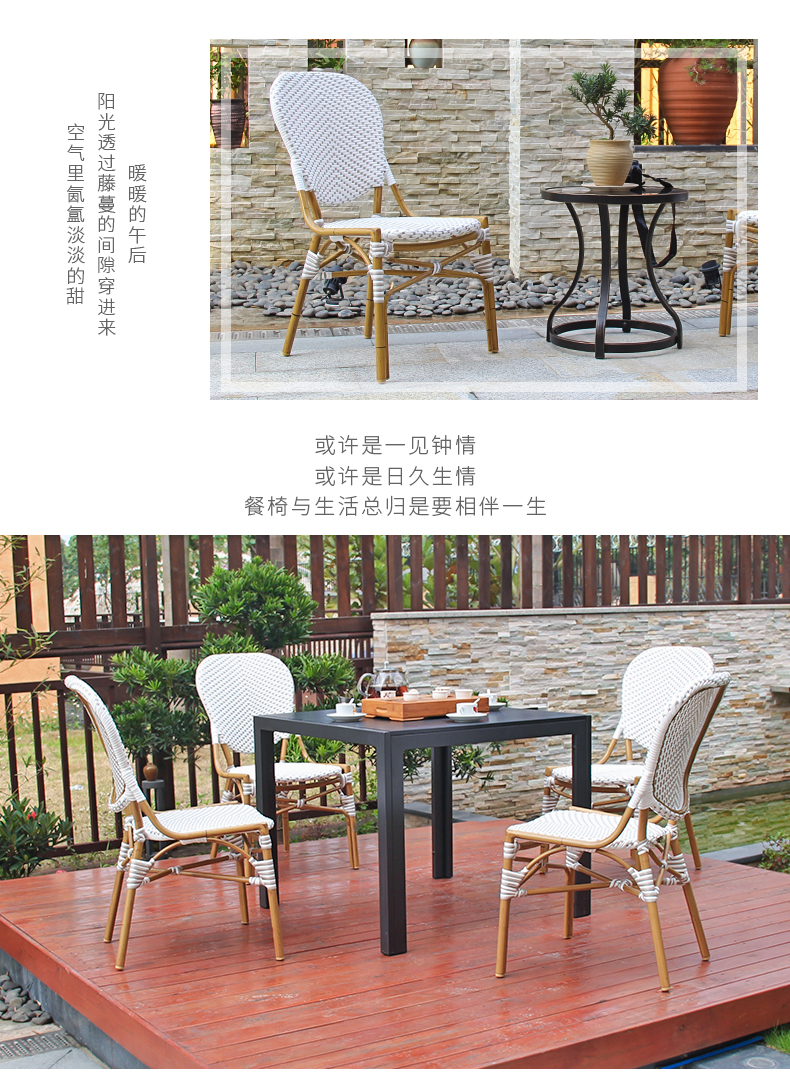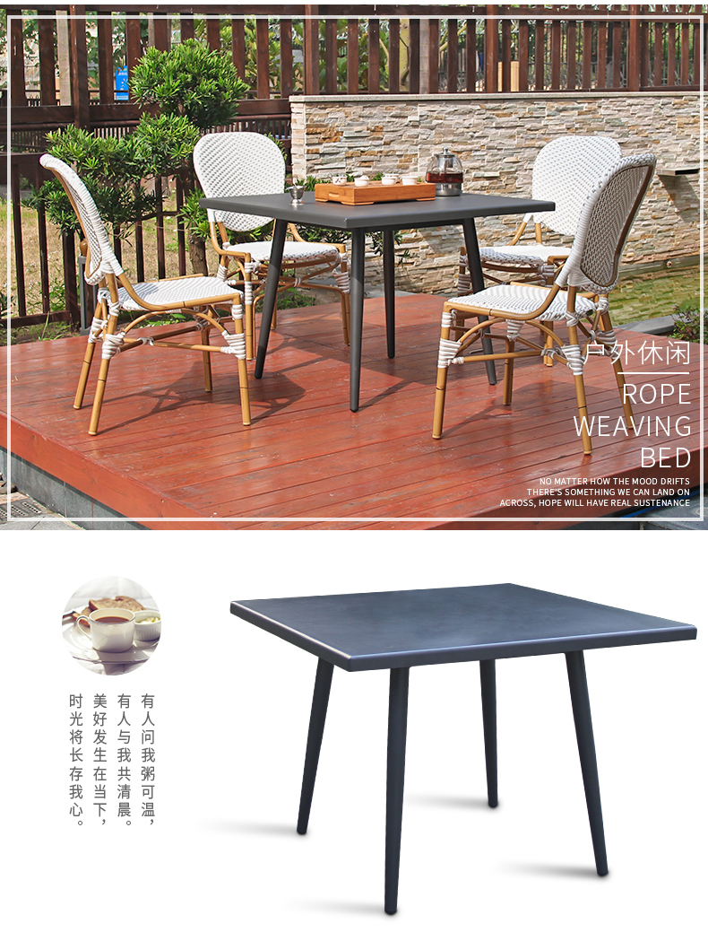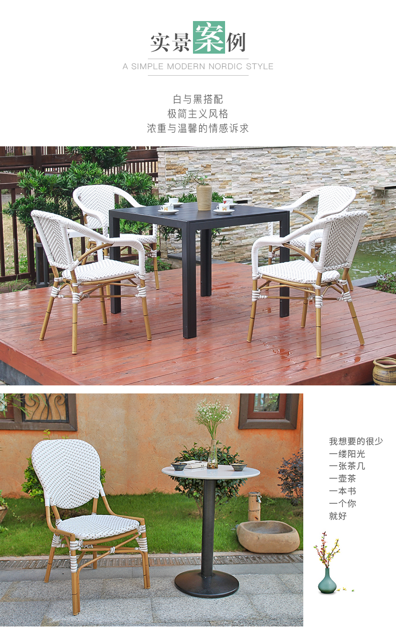 - 材質(zhì):鋁合金框架,仿竹紋處理,PE藤編