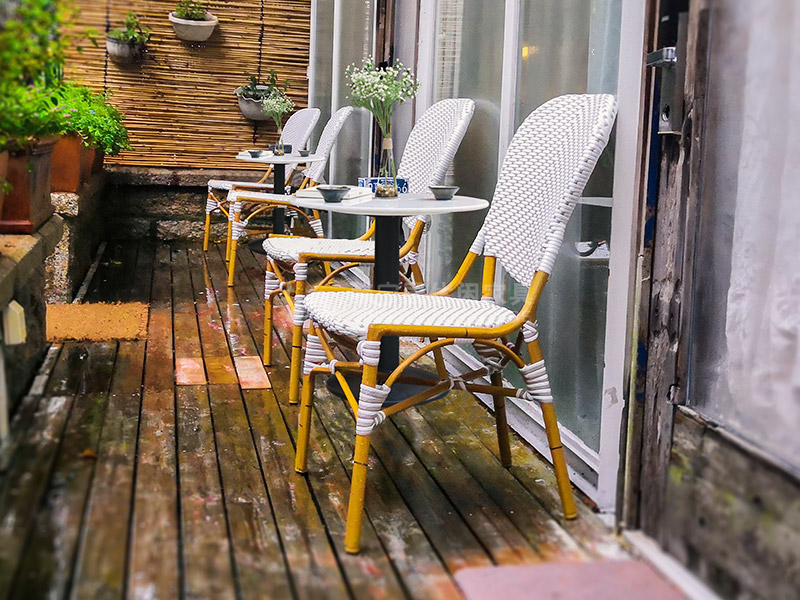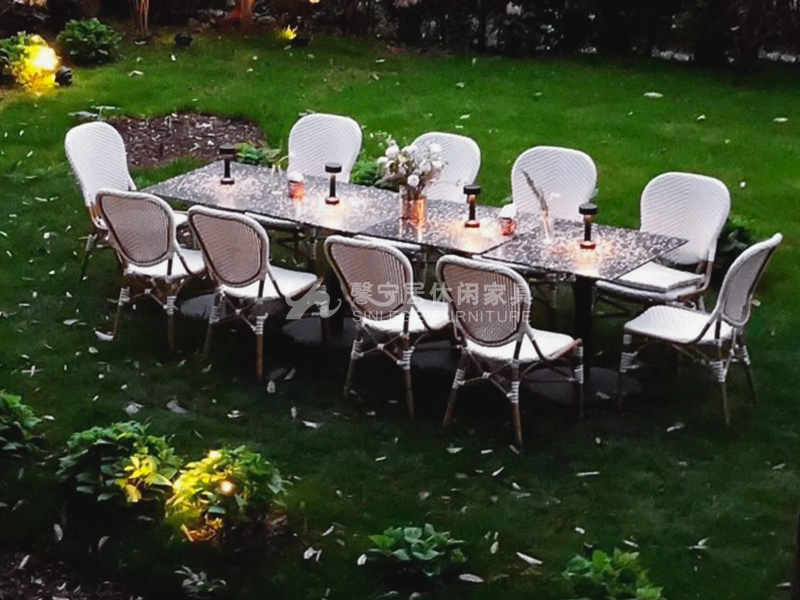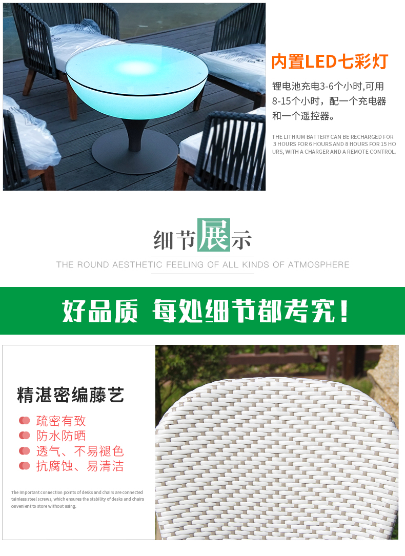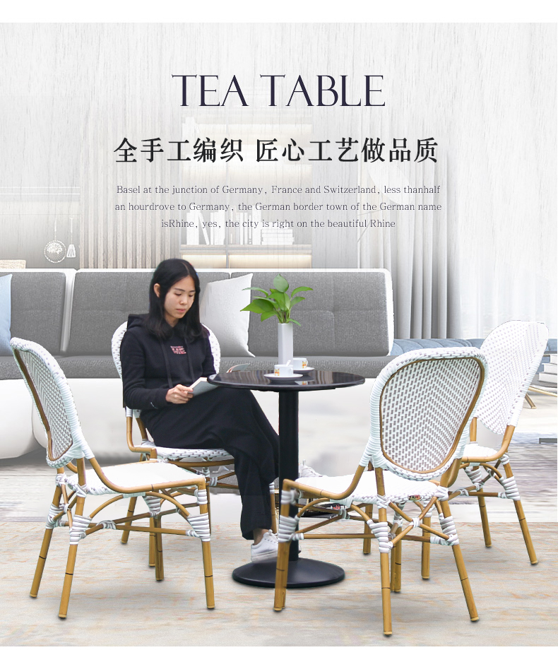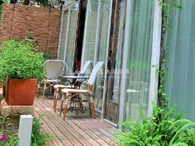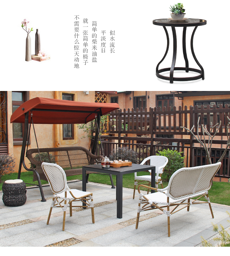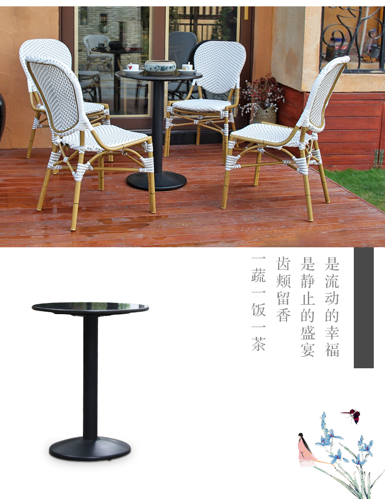 - 材質(zhì):鋁合金框架,仿竹紋處理,PE藤編