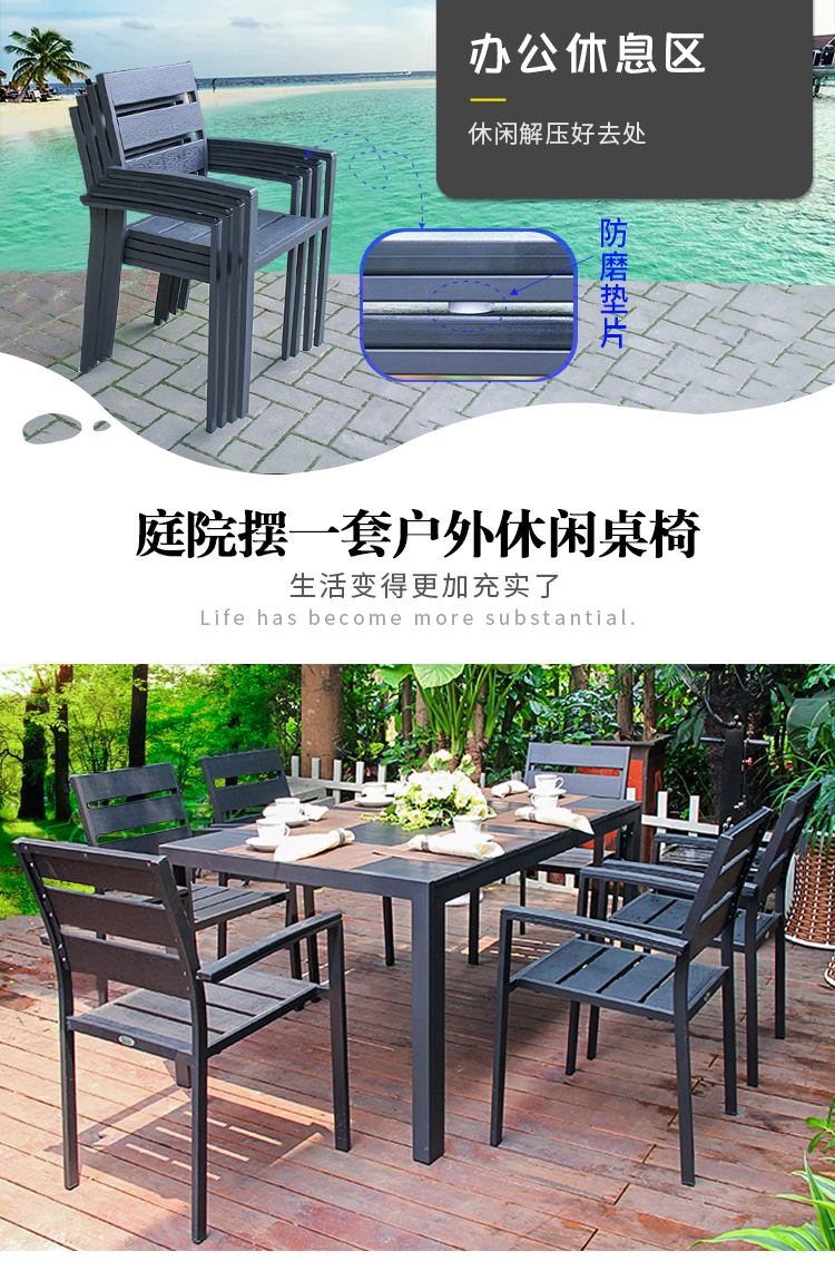 短亮點(diǎn):1.環(huán)保PS木,防水抗曬 2.鋁合金框架,不會(huì)生銹 3.人體工學(xué),倚靠舒適