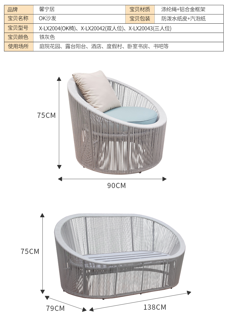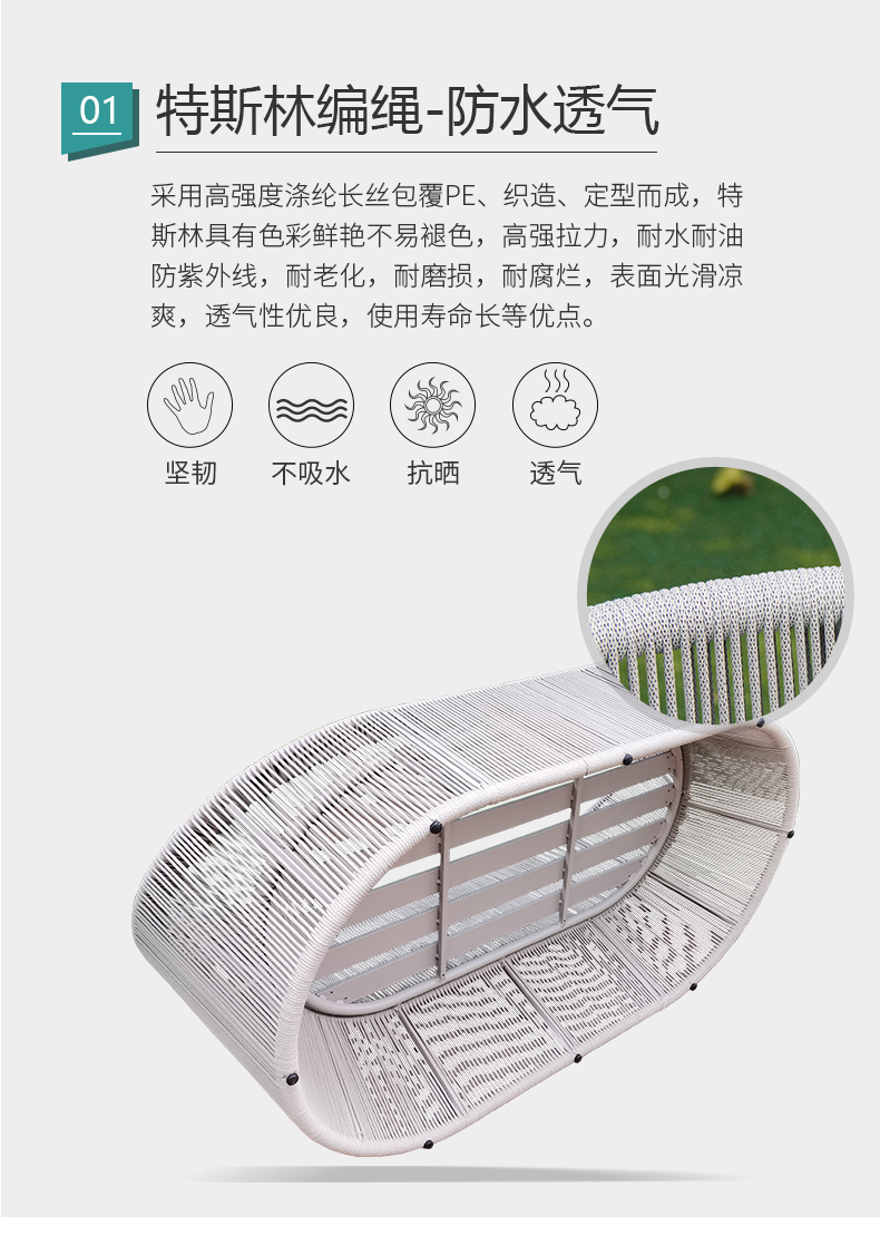 - 材質(zhì):鋁合金框架+特斯林繩+進(jìn)口坐墊軟包