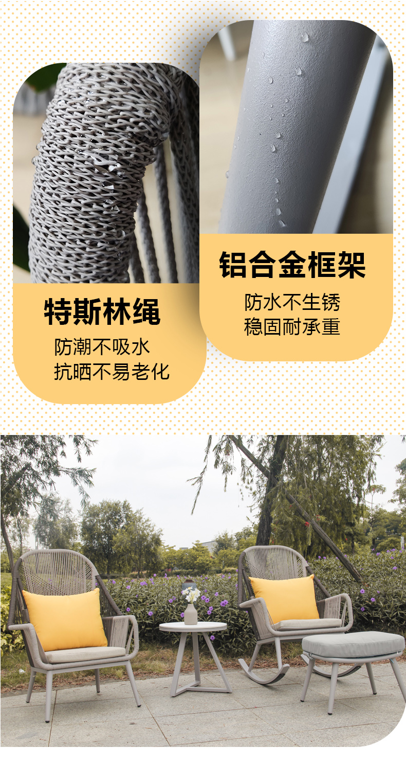 - 材質:鋁合金框架+特斯林繩+國產布坐墊軟包