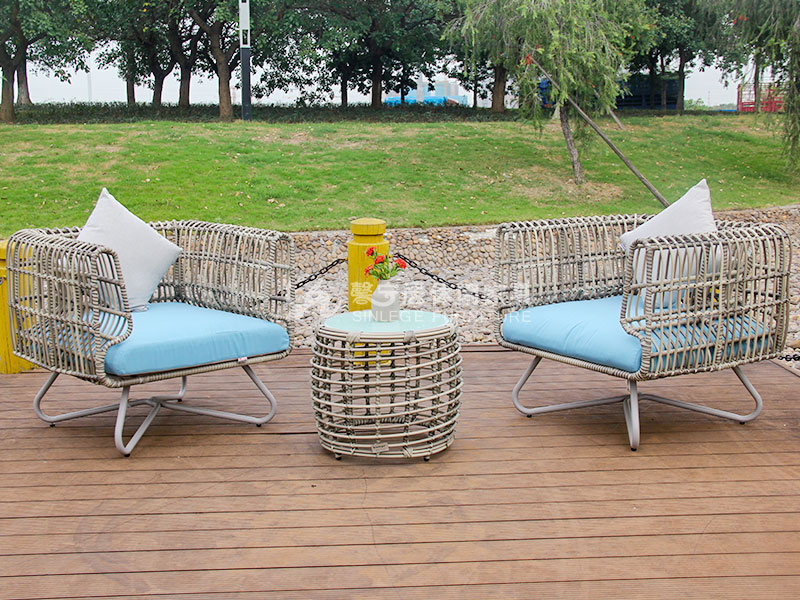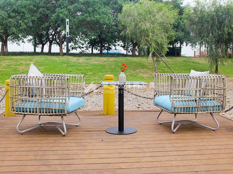 - 材質:鋁合金框架+PE藤條+進口坐墊+網布