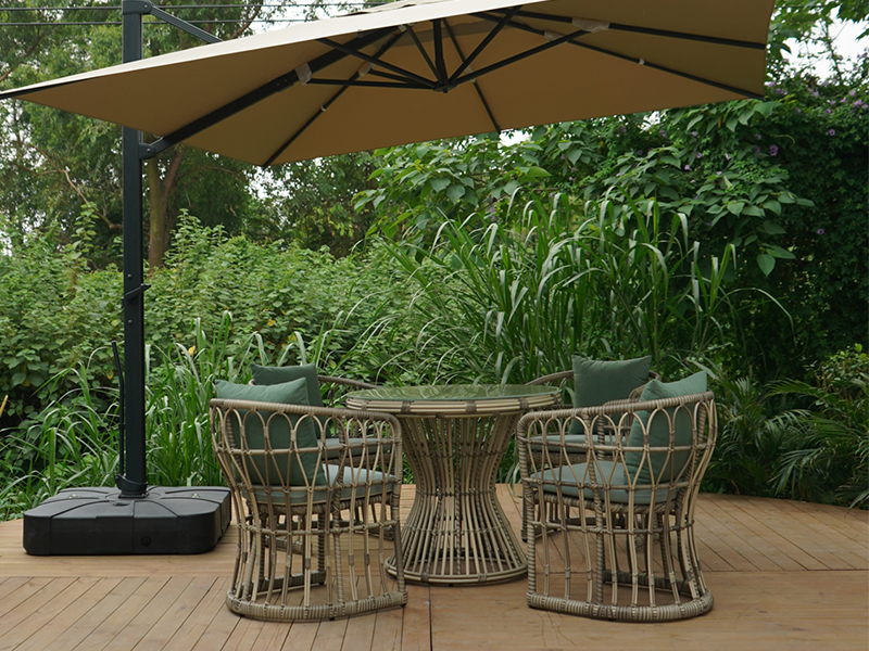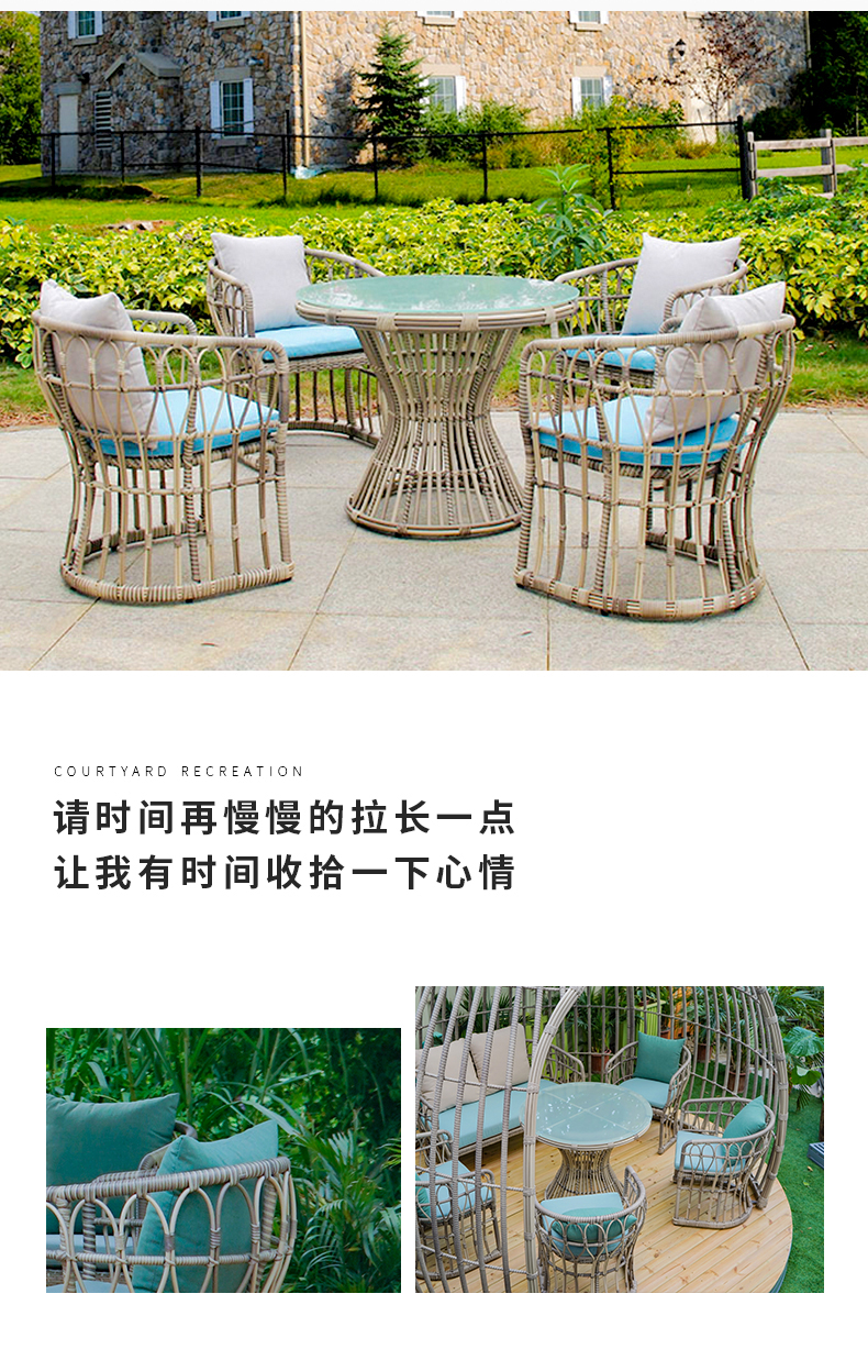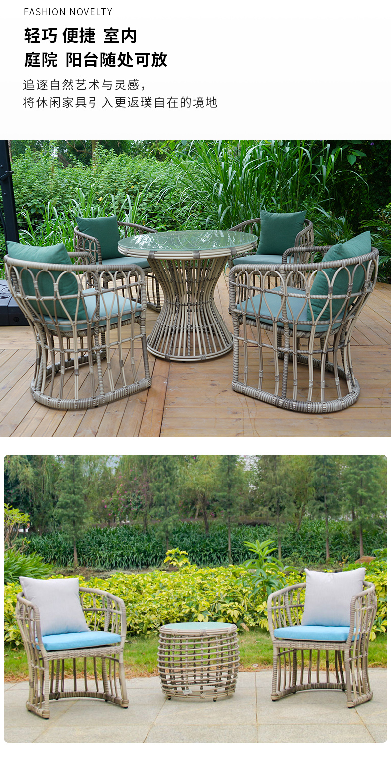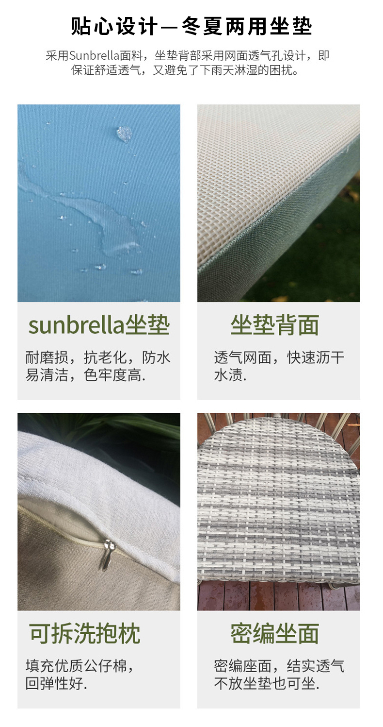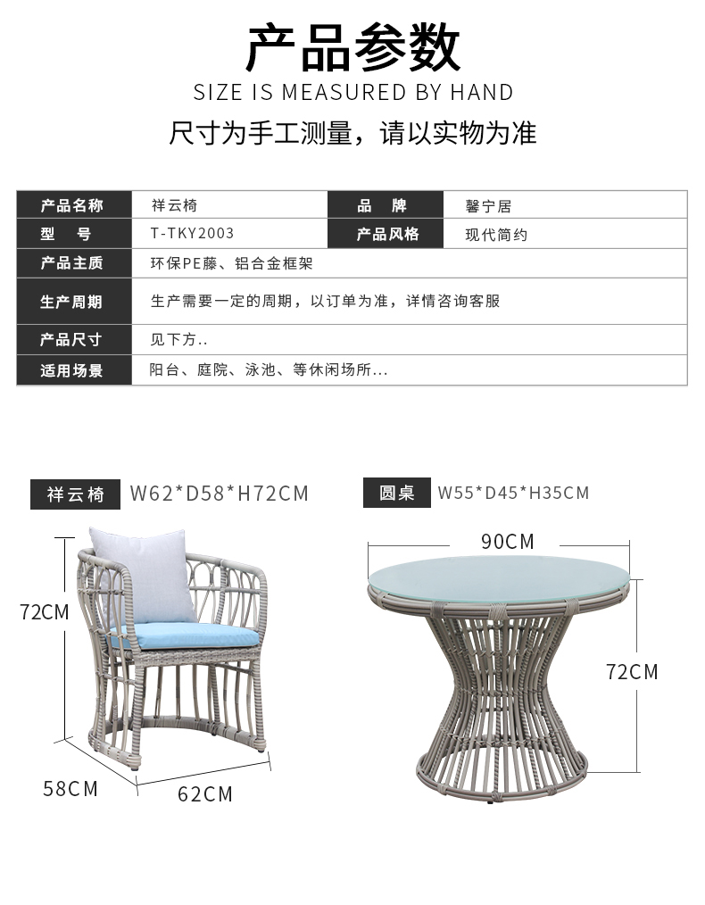 - 材質:鋁合金框架+PE藤條+進口坐墊+網布
