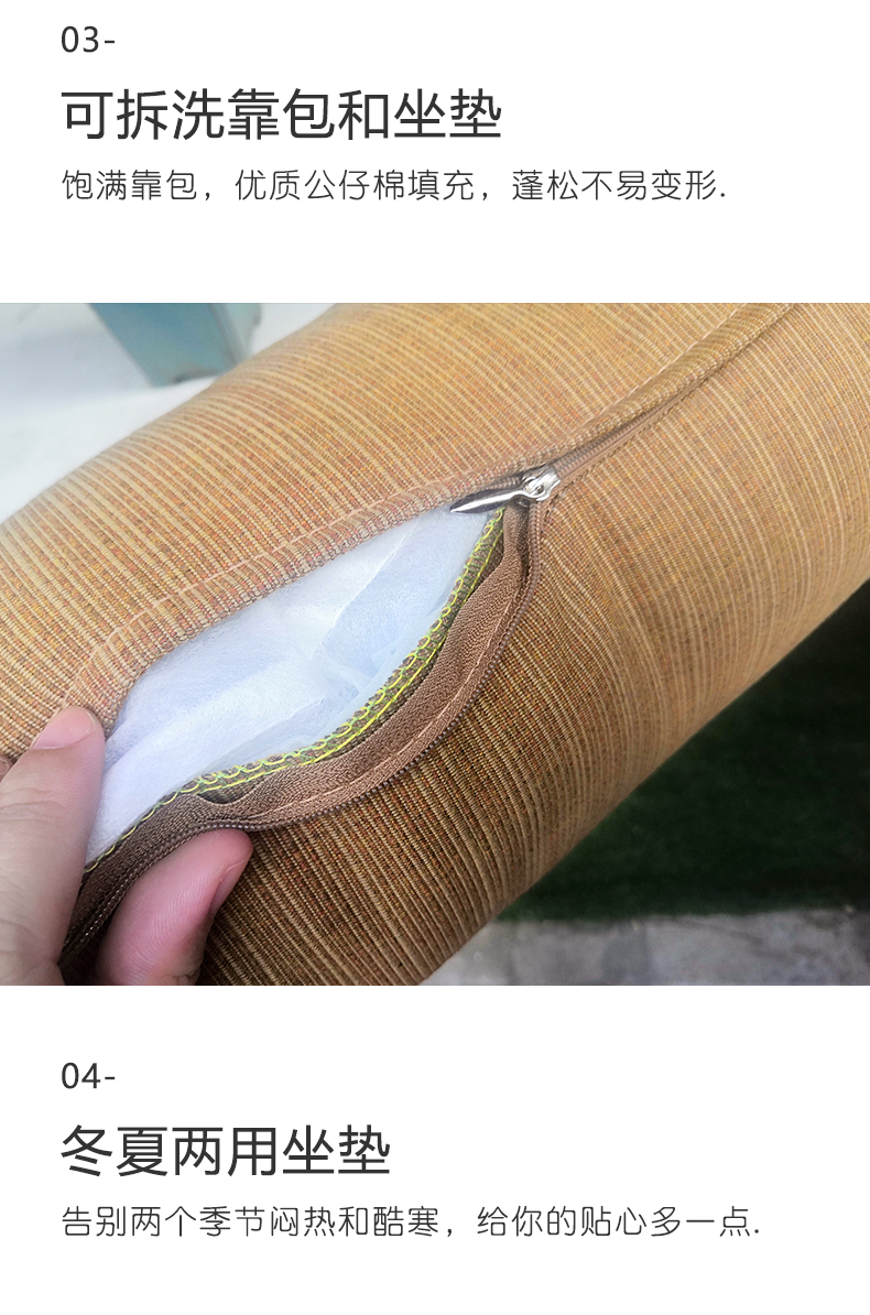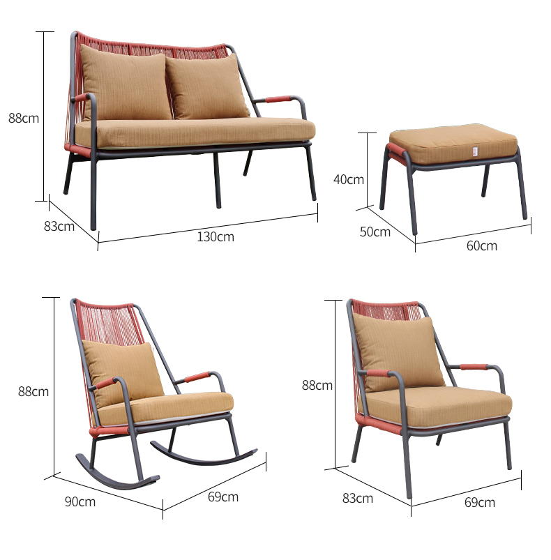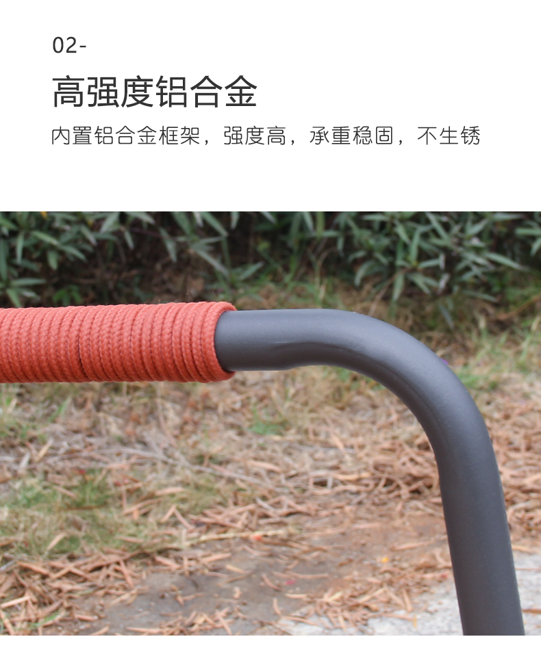 - 材質:鋁合金框架+尼龍繩+金棕進口坐墊+網布