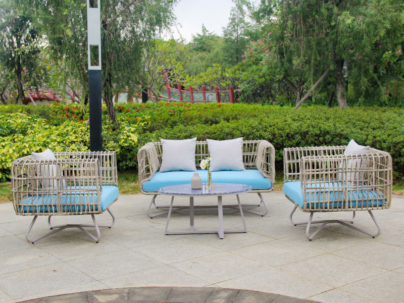 - 材質:鋁合金框架+PE藤條+進口坐墊+網布