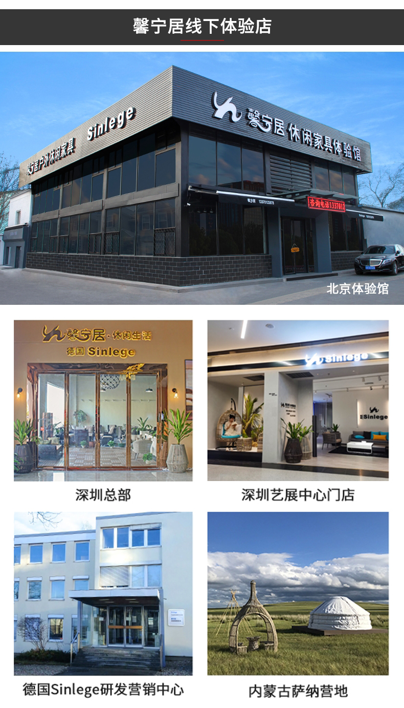 “馨寧居”從1998年涉足戶外休閑產業。2006年在北京設立了休閑家具獨立體驗館,公司國內營銷總部位于深圳。我們倡導一種健康、自然、時尚的全新休閑生活方式。“馨寧居”品牌產品涵蓋了休閑家具、戶外遮陽、庭院休閑配套三大系列近千個品種。