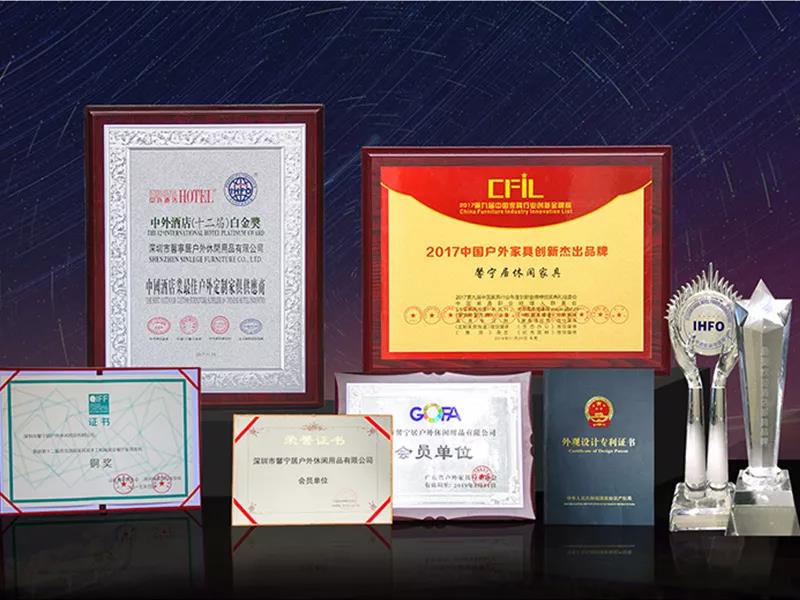中國戶外休閑家具市場發展潛力巨大,馨寧居在戶外休閑家具領域,踏出成功一步,打造了有影響力且具有代表性的馨寧居品牌,且先后獲得“最受歡迎酒店家具品牌獎”“中外酒店白金獎”中外酒店(十二屆)最佳戶外定制家具供應商【白金獎】等獎項